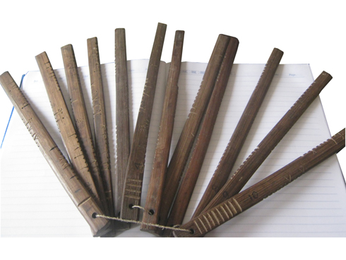 Lịch đoi được làm từ 12 thẻ tre tượng trưng cho 12 tháng trong năm, trên mỗi thẻ tre được khắc 30 khấc tượng trưng cho 30 ngày.