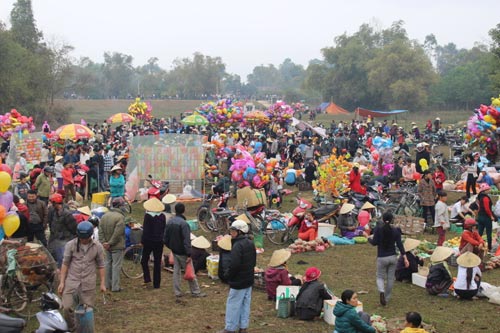 Ngay từ sáng sớm ngày mùng 6 Tết Giáp Ngọ không hẹn mà gặp người dân quanh vùng đã ùn ùn kéo nhau về với phiên chợ để được trút bỏ hết mọi ưu phiền và vận “xui” trong năm cũ và để cầu sự bình an, may mắn trong năm mới, mỗi người đến với phiên chợ đều mang theo “vũ khí” cà chua, trứng gà để sẵn sàng cho trận chiến nảy lửa.